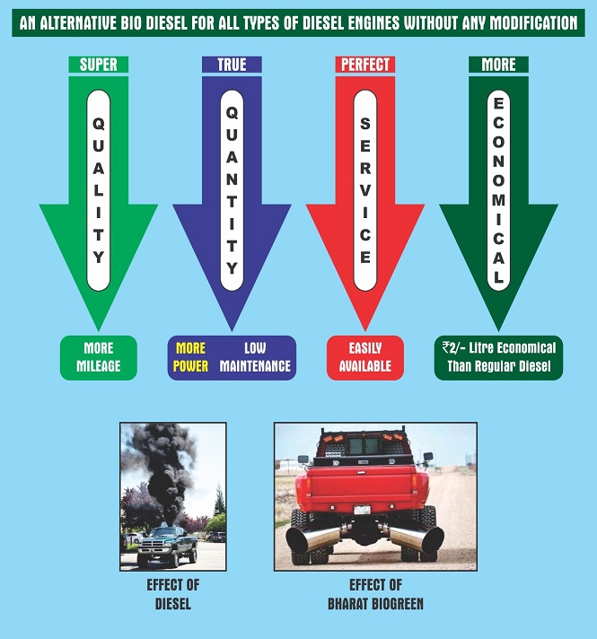 | डीलर्स के प्रति लीटर इनकम | 1.60 Ltr लगभग | 4 से 5 रु. प्रति लीटर | प्रति लीटर डीलर का प्रॉफिट बायोडीजल में काफी ज्यादा है |