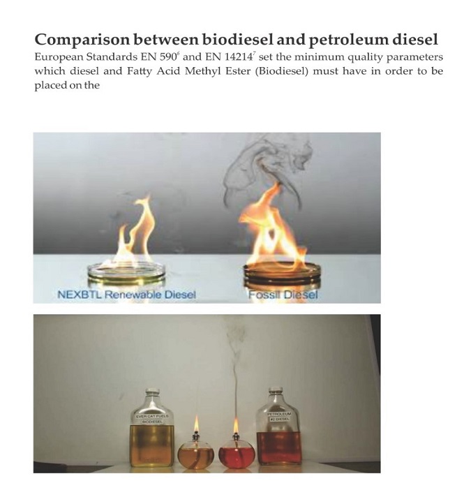 | ओक्सीजन की मात्रा | 1/2% | 10% | फ्यूल के साथ कम्बशन बायोडीजल की पूरी मात्रा जलाने में उपयोगी और ओक्सीजन ही तो जलाने के लिए उपयोगी तत्व है। |